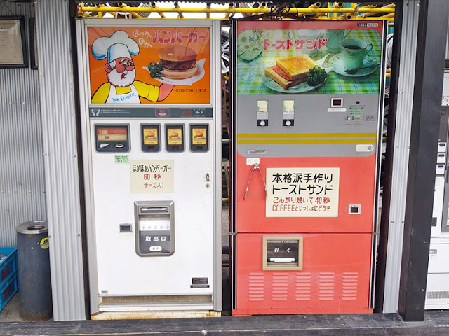 | 這類提供食物的販賣機,其實也都是昭和時期的老機器了。 |